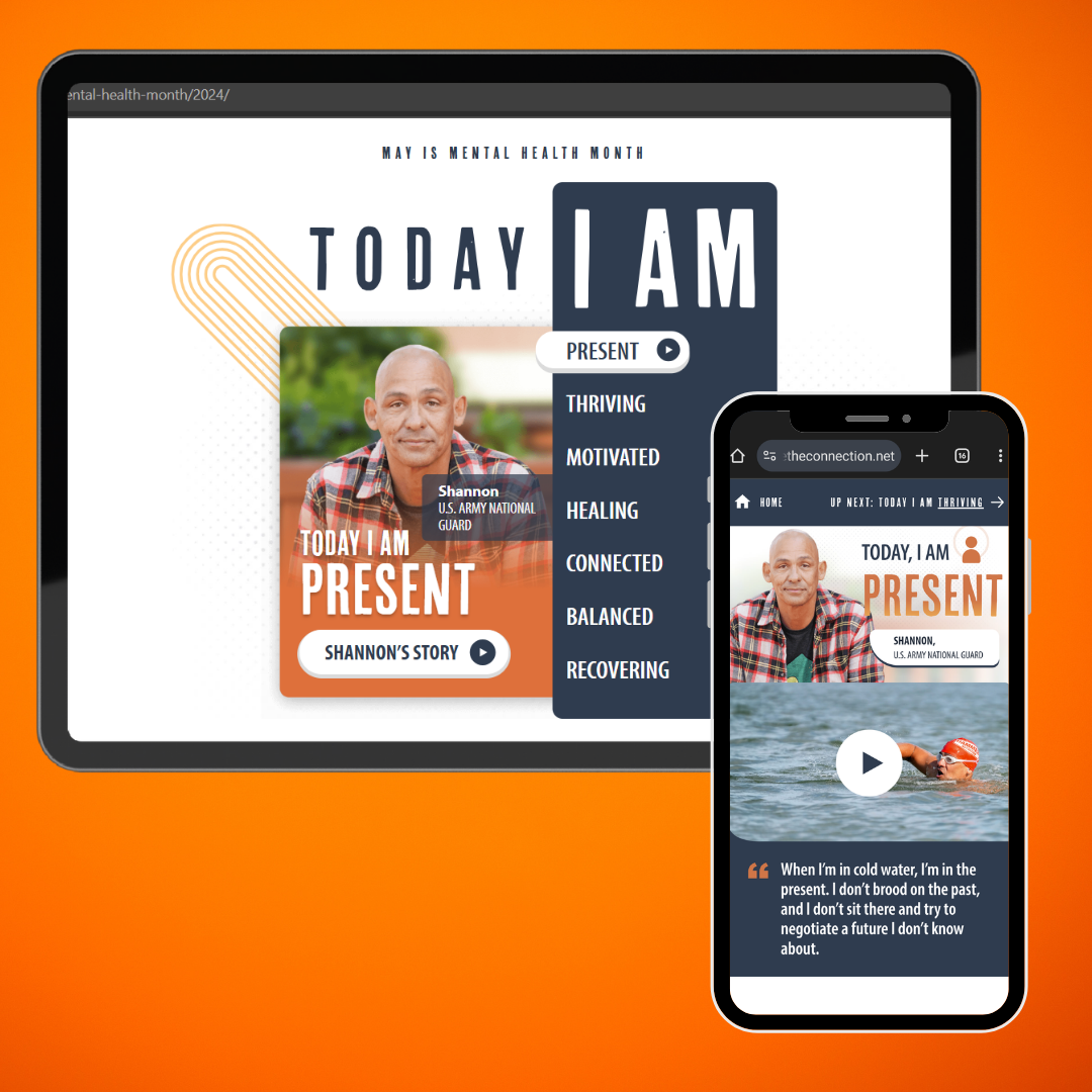 For Mental Health Month in May, I developed a strategy to amplify these inspiring stories of veterans under the theme “Today I Am.” This approach aimed not only to destigmatize seeking help but also to highlight the potential for improved health after treatment for various mental health challenges.