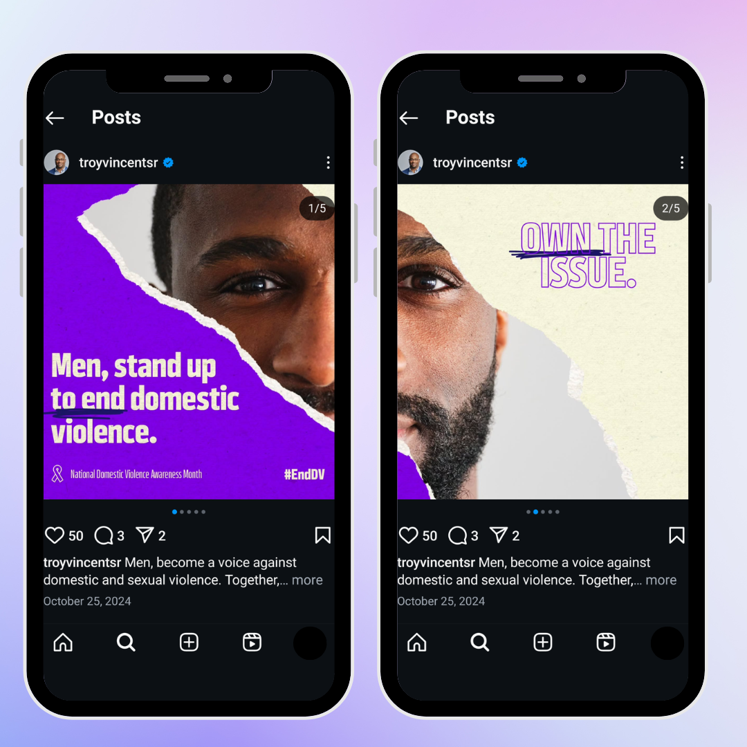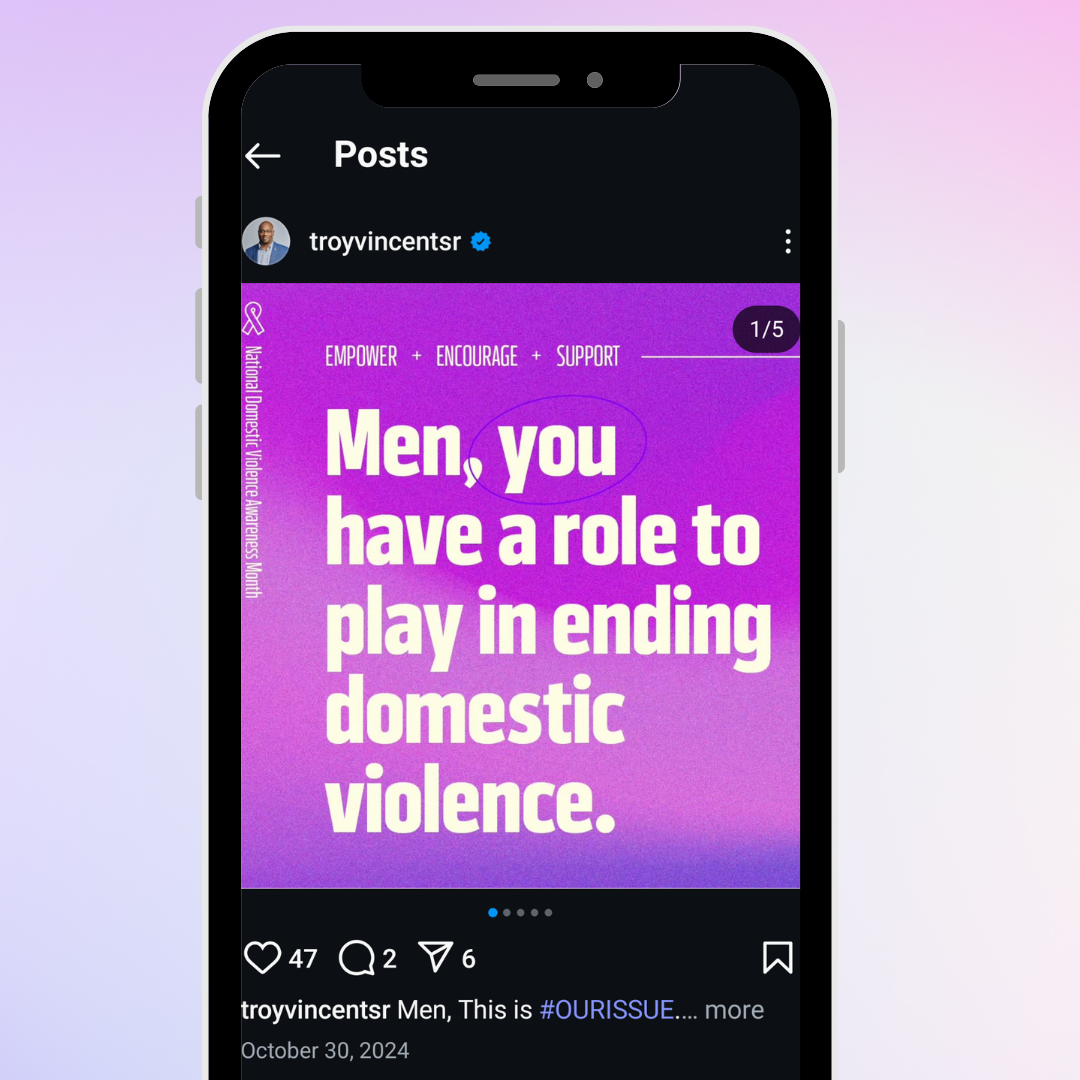 My approach included creating engaging content highlighting the roles men can play and the specific actions they can take during DVAM and throughout the year to contribute to the conversation and the solution.